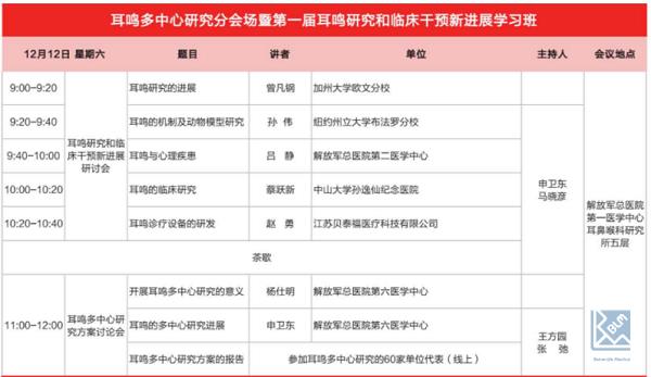 耳鳴多中心研究分會場暨第一屆耳鳴研究和臨床干預(yù)新進展學(xué)習(xí)班日程